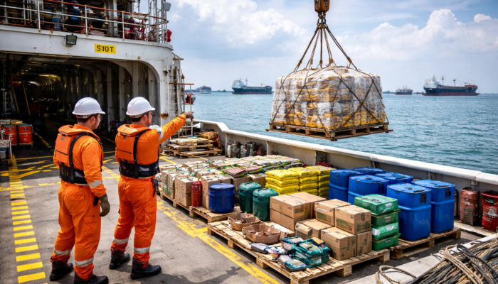 Our team supports vessels with essential products including provisions, marine lubricants, deck and engine stores, technical supplies, and operational equipment required for safe and efficient maritime operations.Through strong sourcing networks, professional logistics, and industry expertise, we ensure every vessel receives quality supplies on time.